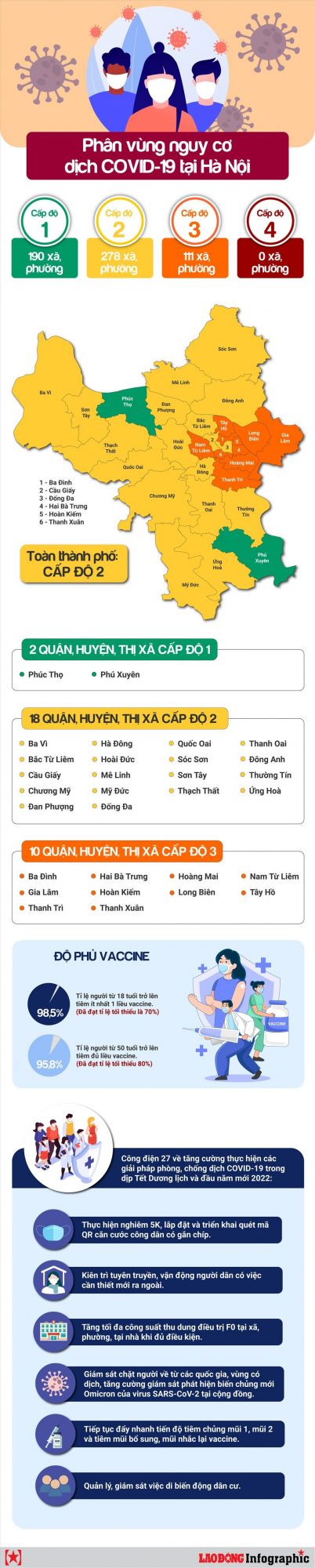 2022-01-08 | 13:43:23 A- A A+ Cập nhật bản đồ cấp độ dịch Hà Nội: Nơi nào đổi vàng, nơi nào chuyển cam? Chia sẻ HẠ NGUYÊN - PHƯƠNG ANH Tin liên quan Hà Nội: Điều chỉnh hình thức tổ chức dạy và học tại 4 quận, huyện từ 10/1 Hà Nội điều chỉnh hướng dẫn phân luồng tiếp nhận, điều trị người bệnh Covid-19 Trường Mầm non Chim Non tổ chức Hội nghị Sơ kết Học kỳ I năm học 2021 - 2022 Tăng cường bảo đảm an toàn cho học sinh dịp nghỉ Tết Hà Nội: Khởi động trạm ATM oxy miễn phí hỗ trợ điều trị F0 tại nhà Dấu hiệu phải báo ngay cho nhân viên y tế với F0 điều trị tại nhà Những quy định cán bộ, công chức, viên chức cần biết từ 2022 Kế hoạch tiêm vaccine cho trẻ 5-11 tuổi đã được Bộ Y tế báo cáo Chính phủ Thay đổi mức đóng bảo hiểm xã hội tự nguyện từ năm 2022 Trường học ở Hà Nội dạy học linh hoạt, ứng phó với cấp độ dịch Covid-19