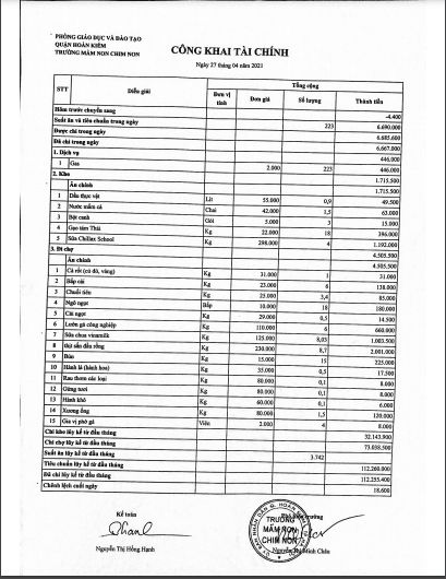 2022-01-08 | 13:50:21 A- A A+ Công khai tài chính ngày 27/4/2021 Chia sẻ Tin bài: Trường Mầm non Chim Non Tin liên quan Công khai tài chính ngày 29/4/2021 Công khai tài chính ngày 28/4/2021 Công khai tài chính ngày 26/4/2021 Báo cáo về việc ký hợp đồng với các đơn vị cung ứng thực phẩm, lương thực, chất đốt. Năm học 2020 - 2021 Công khai tài chính ngày 23/4/2021 Công khai tài chính ngày 22/4/2021 Công khai tài chính ngày 20/4/2021 Công khai tài chính ngày 19/4/2021 Công khai tài chính ngày 16/4/2021 Công khai tài chính ngày 15/4/2021