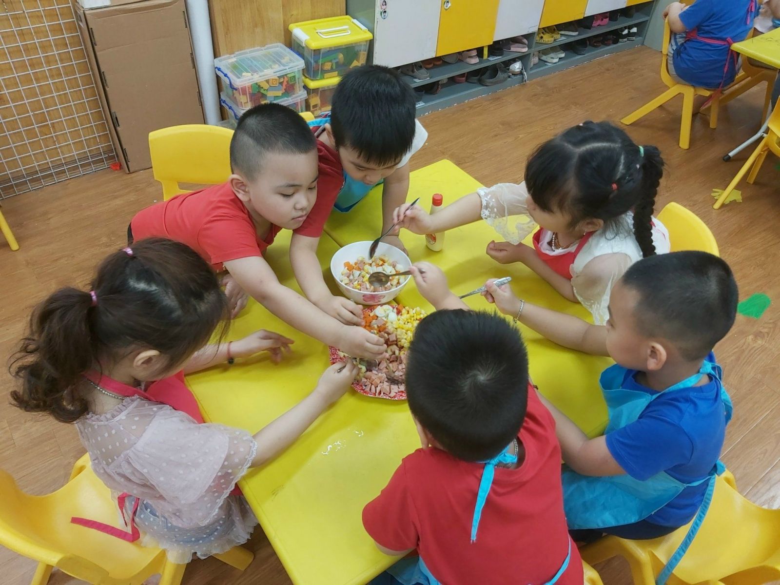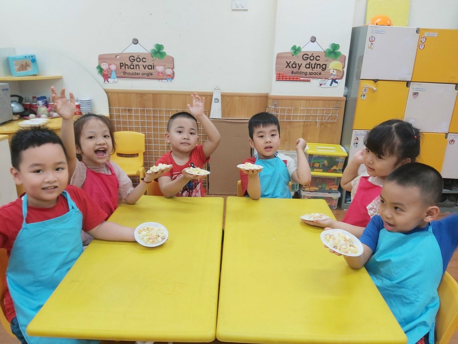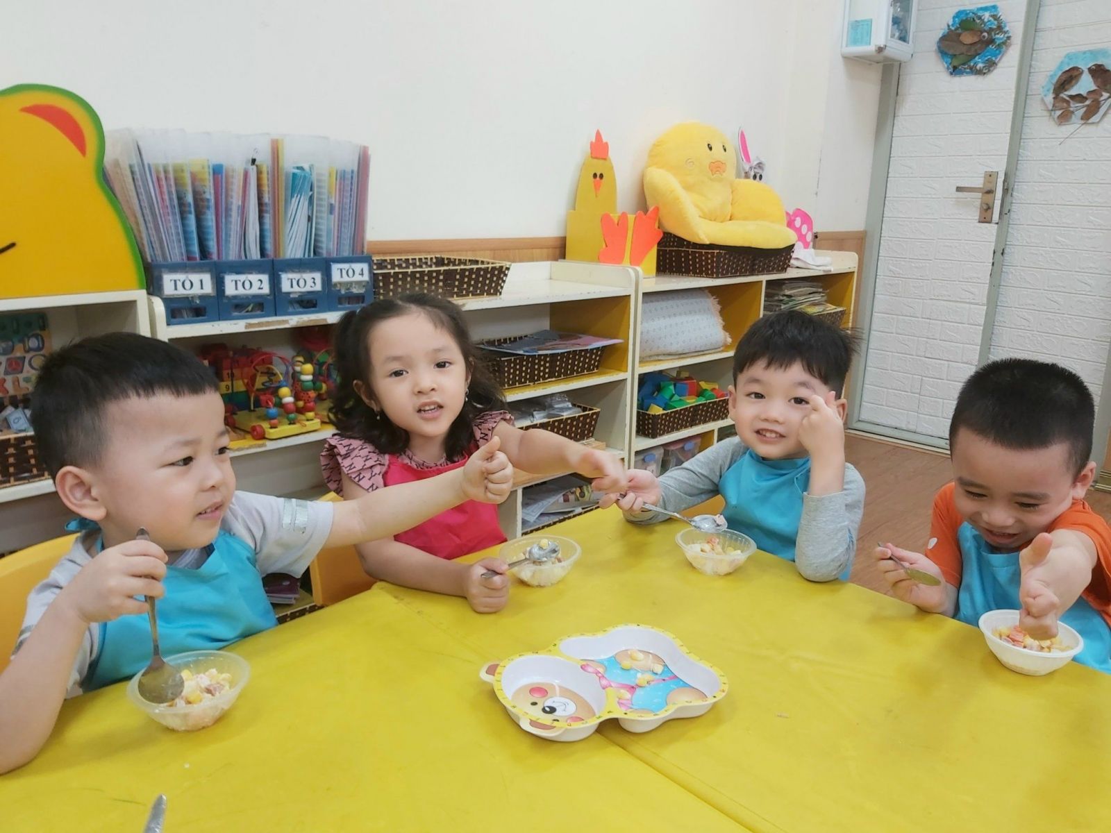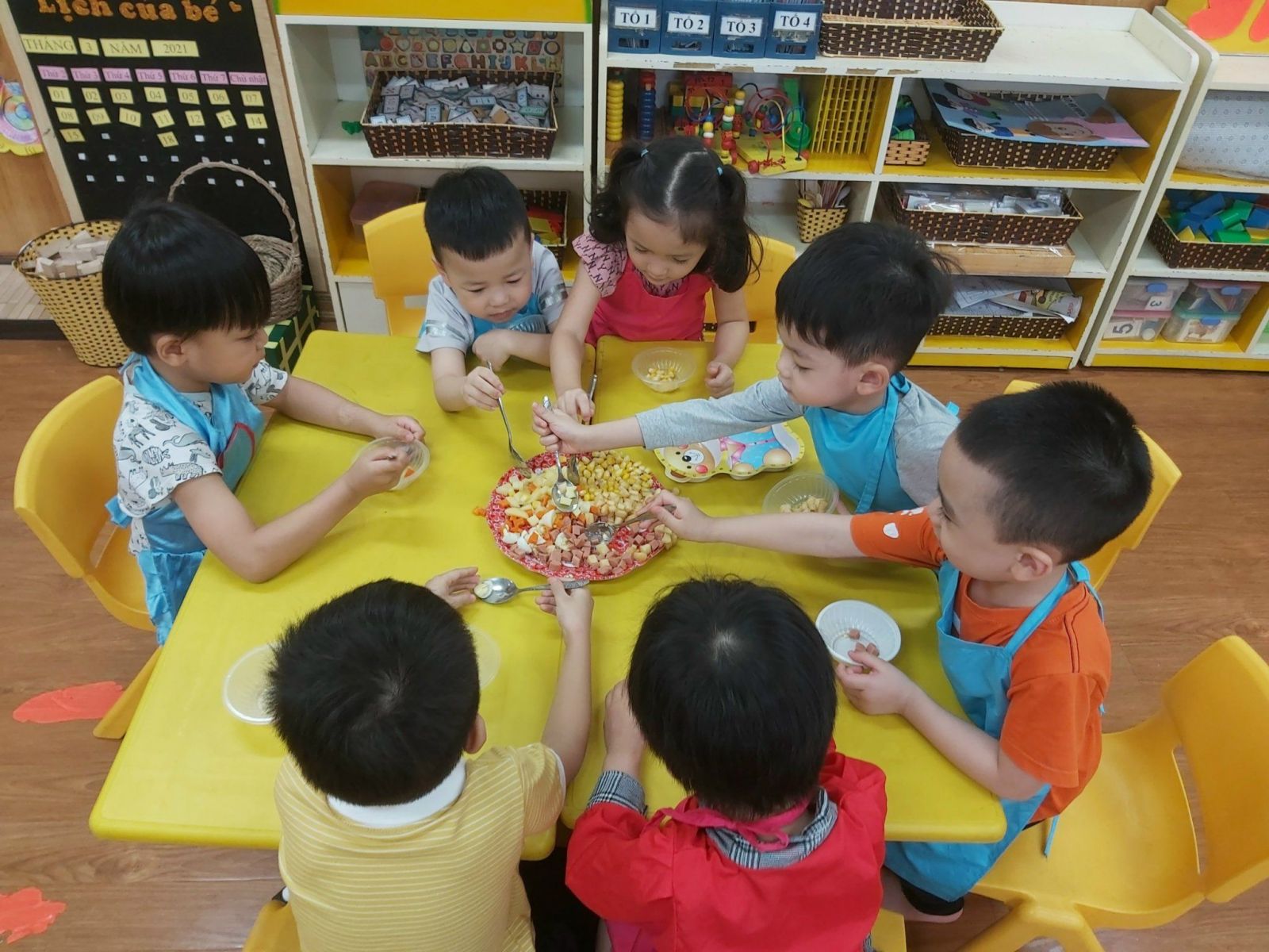 Hoạt động trải nghiệm Làm món salat cùng các bạn lớp mẫu giáo nhỡ B2 Trường Mầm non Chim Non