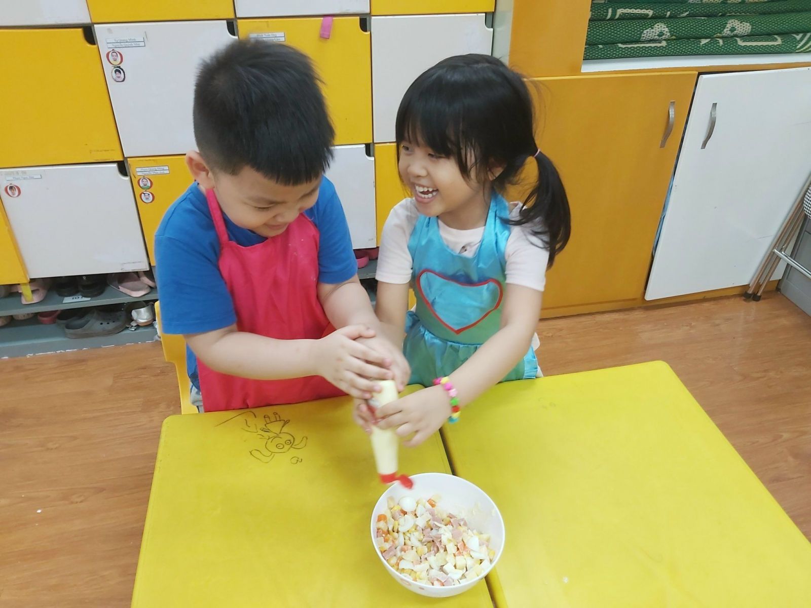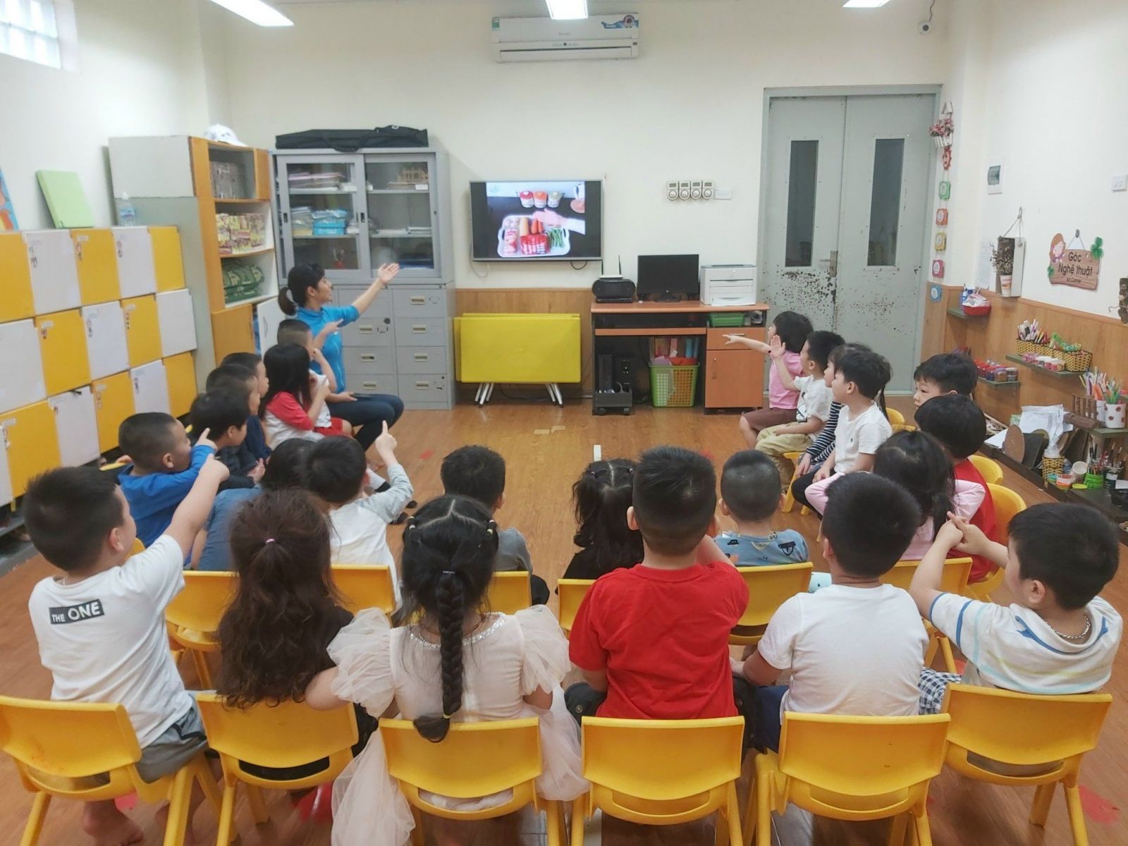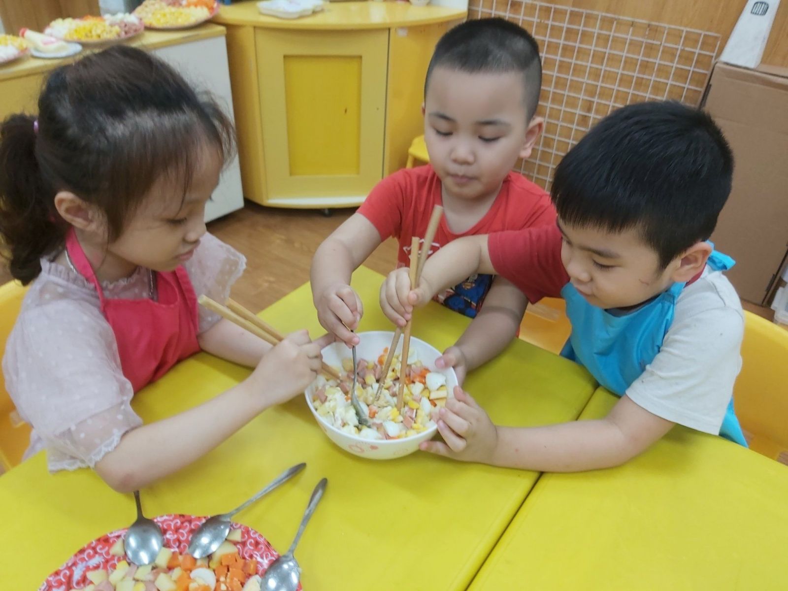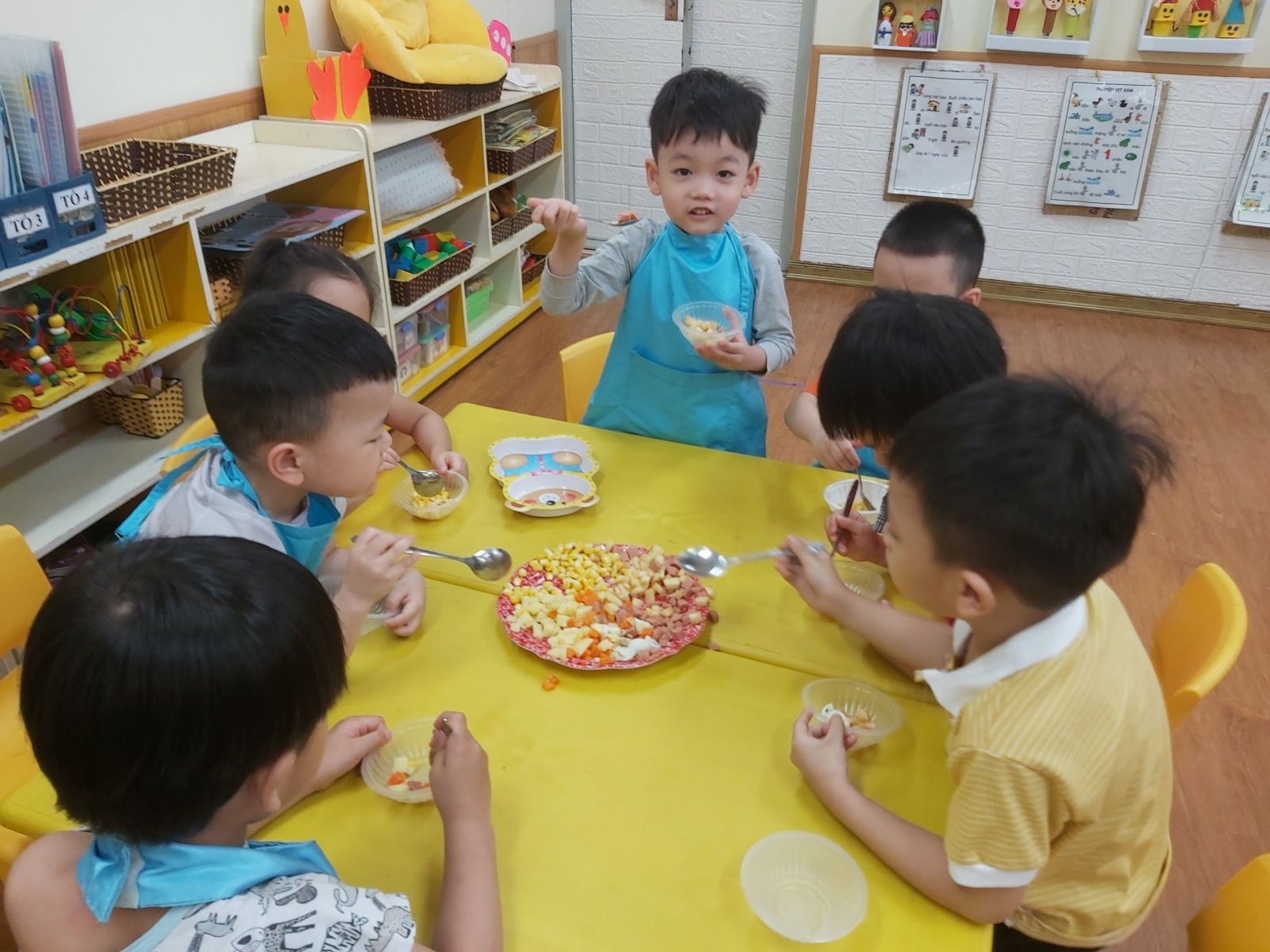 Hoạt động trải nghiệm Làm món salat cùng các bạn lớp mẫu giáo nhỡ B2 Trường Mầm non Chim Non