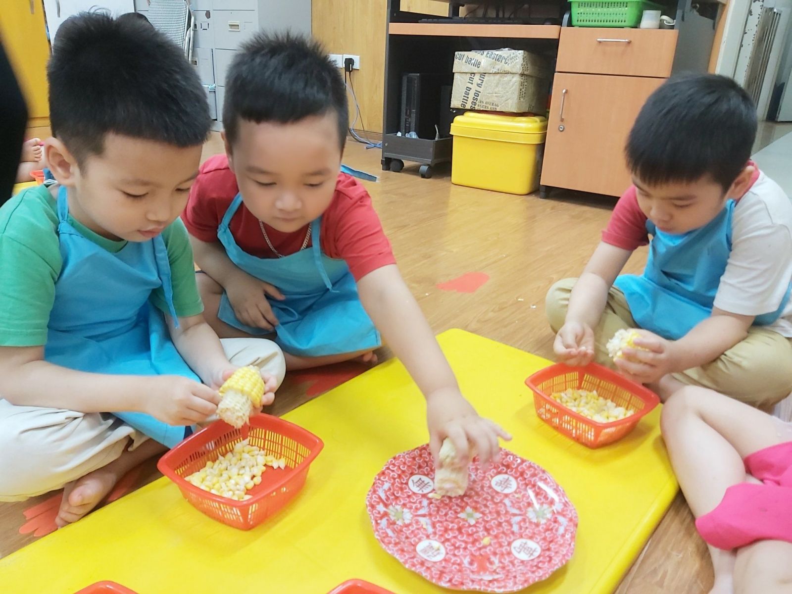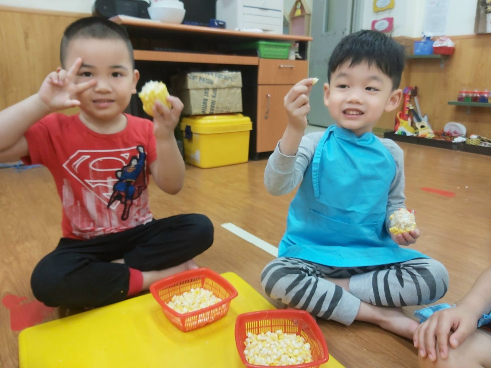Chúng mình cùng tách những hạt ngô để chuẩn bị cho món salat nào!