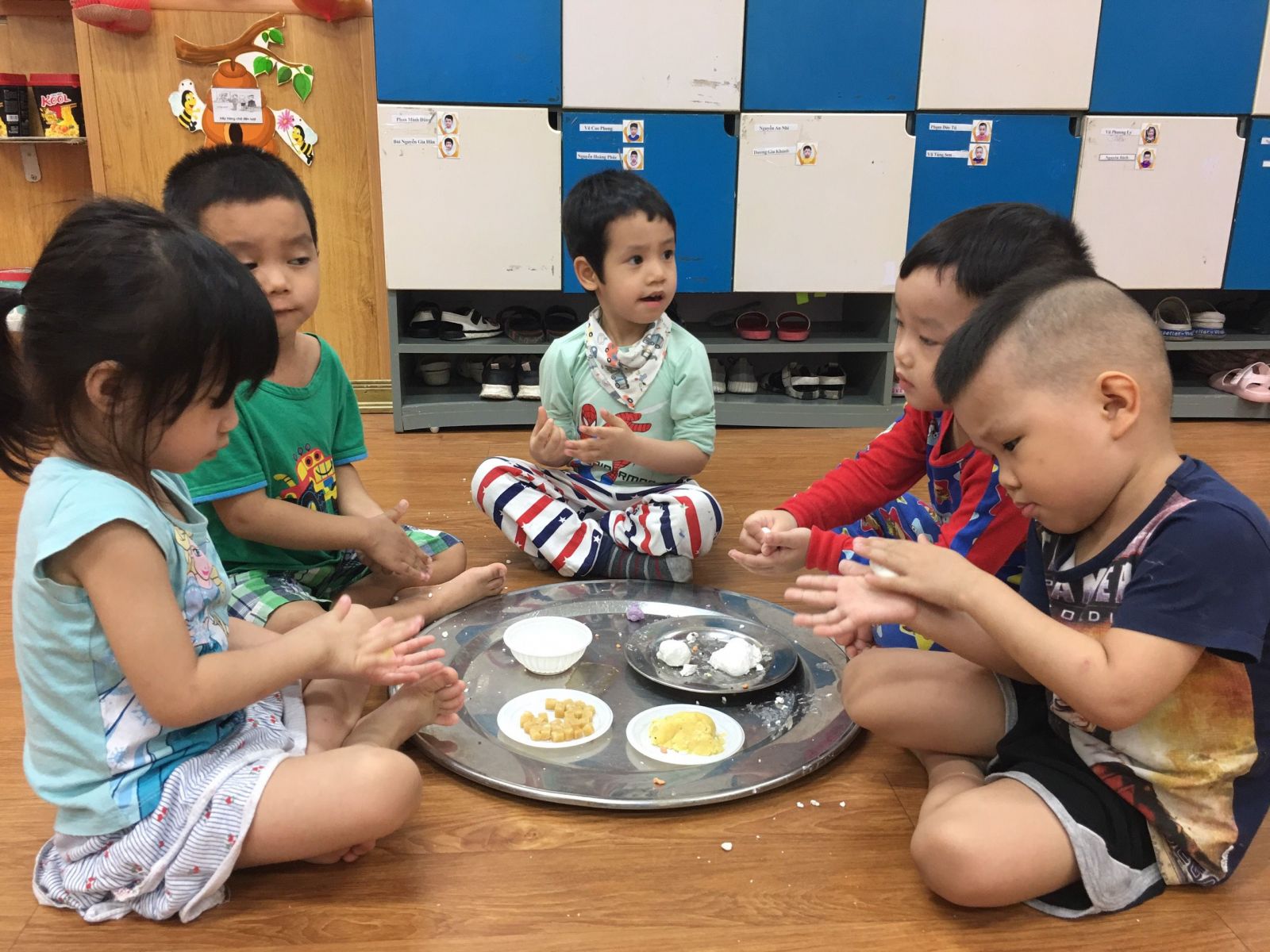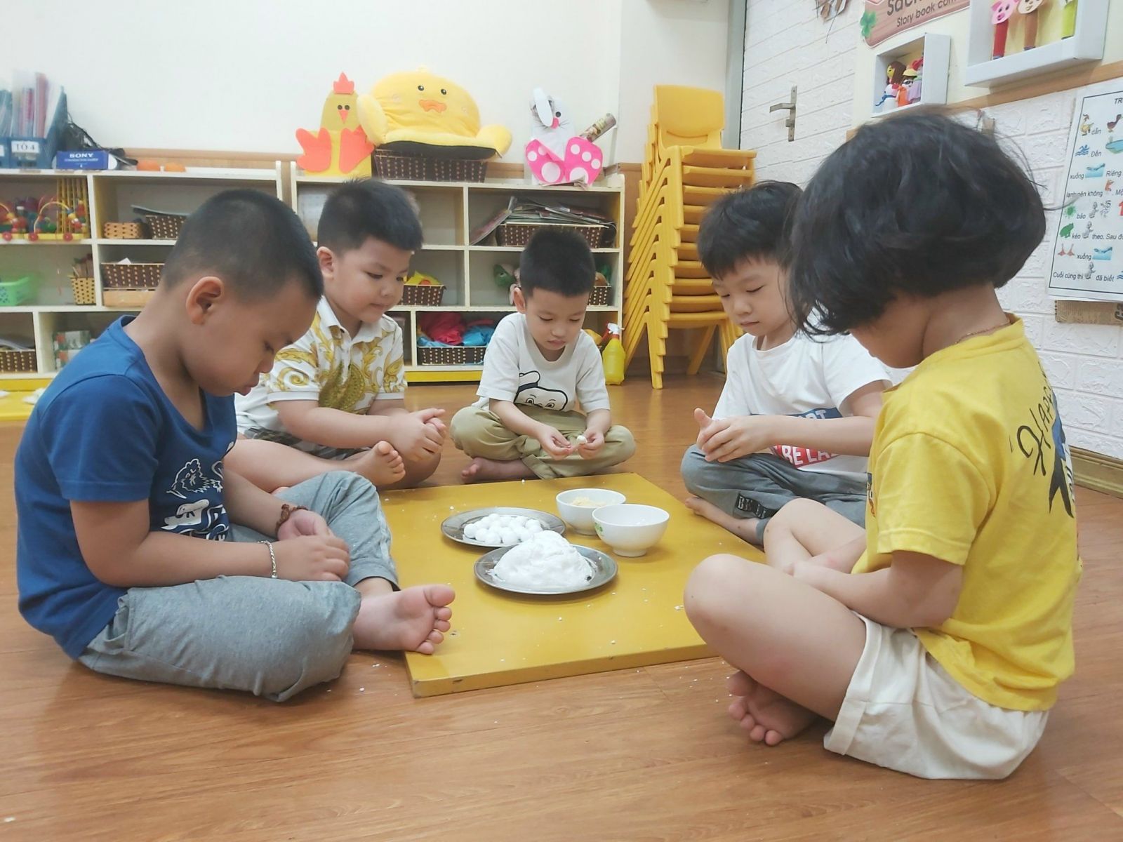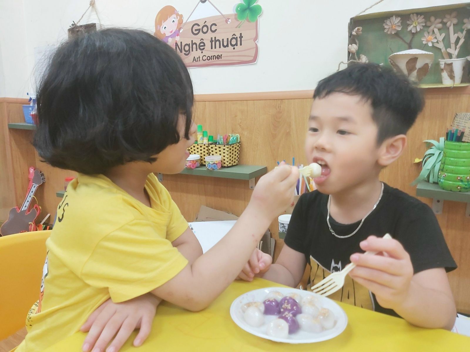 Hoạt động trải nghiệm trong ngày tết Hàn thực của các bé Trường Mầm non Chim Non