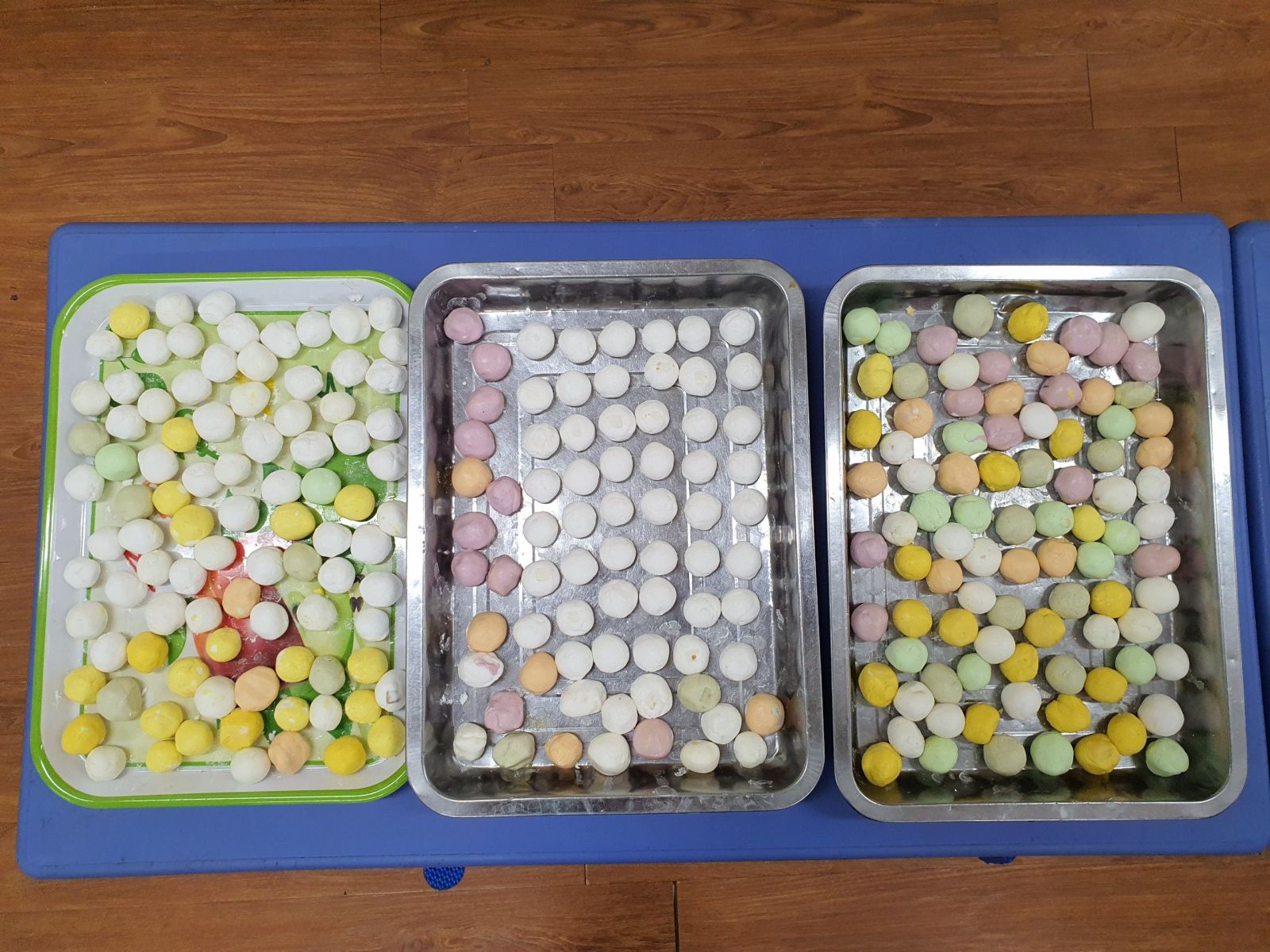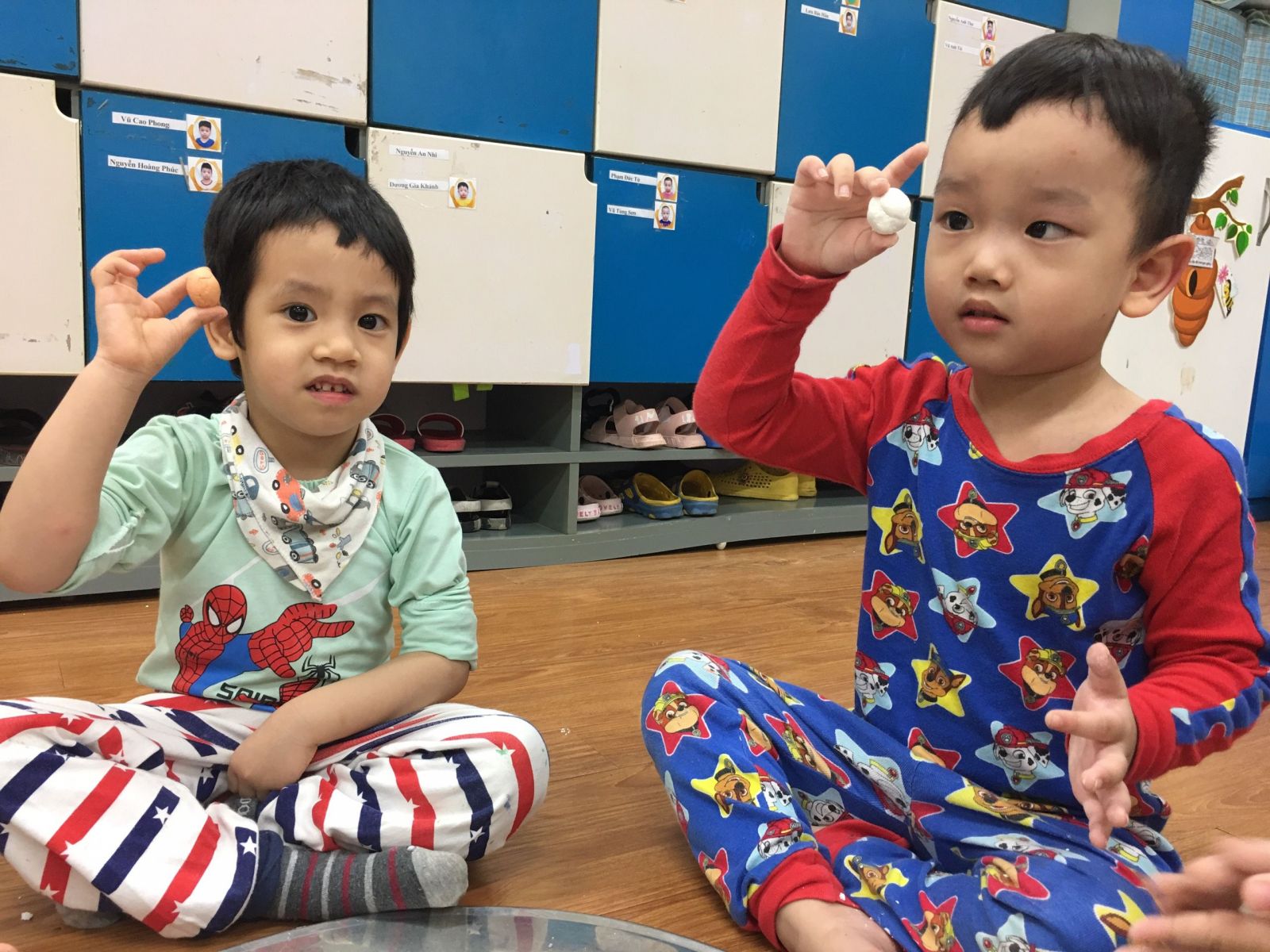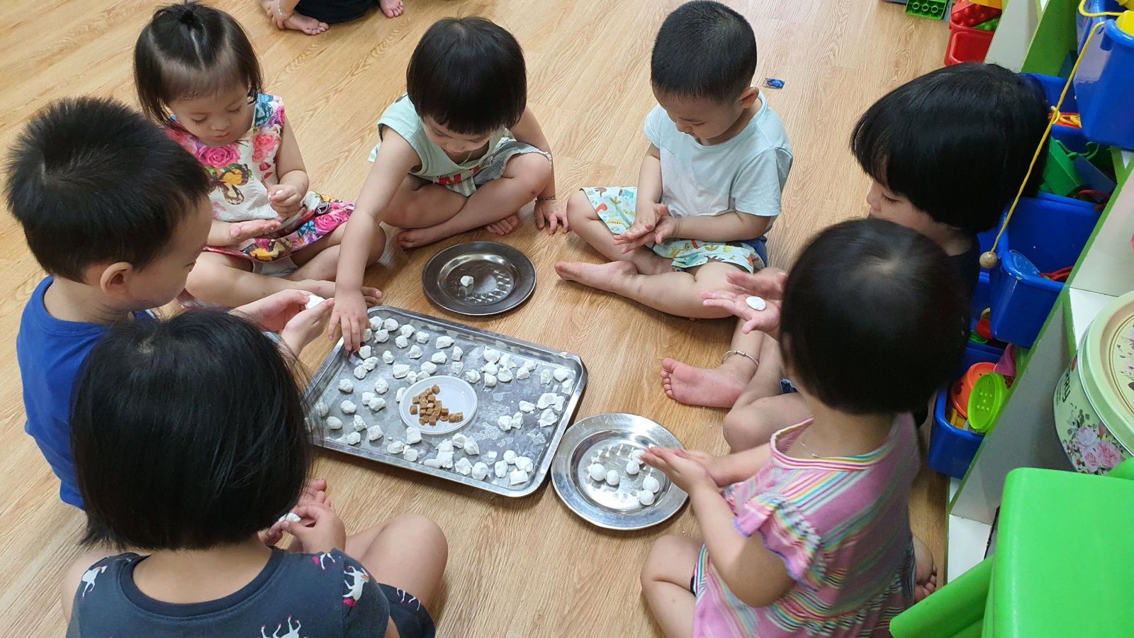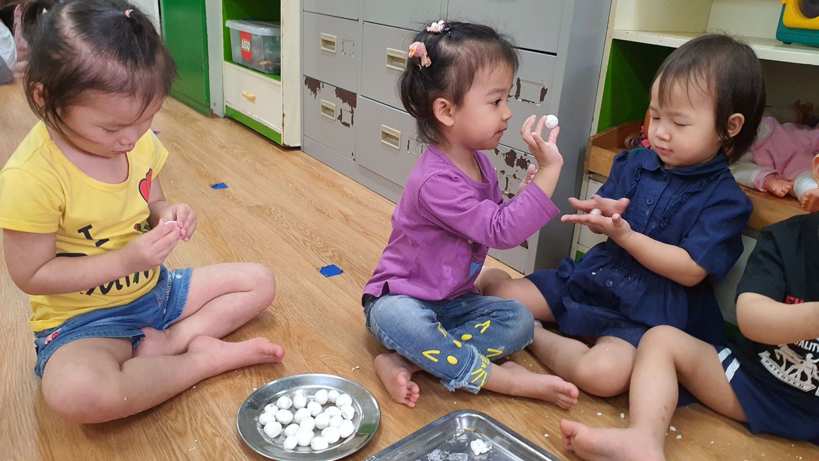 Hoạt động này không những nhận được sự thích thú của các bạn nhỏ mà cả sự ủng hộ của rất nhiều cha mẹ học sinh. ở mỗi nhóm, lớp, cô giáo đã kể cho trẻ nghe về sự tích ngày tết Hàn thực, được nghe cô giới thiệu về nguyên liệu, cách làm bánh trôi bánh chay. Hôm nay các bạn ấy được ôn lại các kỹ năng nặn nên khi thực hành nặn bánh: thao tác lấy bột, xoay tròn, ấn dẹt bỏ viên đường vào giữa rồi lại xoay tròn để tạo ra sản phẩm chẳng khó khăn tẹo nào.