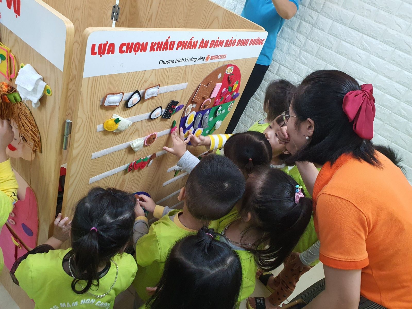 Đến với Festival Kỹ năng sống, các bạn nhỏ được tham gia các hoạt động vui chơi trải nghiệm nhiều kỹ năng khác nhau như: kỹ năng đeo khẩu trang đúng cách, các kỹ năng tự phục vụ, cách lựa chọn khẩu phần ăn dinh dưỡng, các trò chơi khám phá về màu sắc, hình dạng… Qua các hoạt động này sẽ giúp trẻ hình thành phẩm chất nhân cách, phát triển năng lực khoa học, thẩm mỹ, khả năng tự học, khả năng hợp tác làm việc nhóm, kỹ năng giao tiếp và hơn nữa đó là kỹ năng tự phục vụ bản thân cho trẻ.