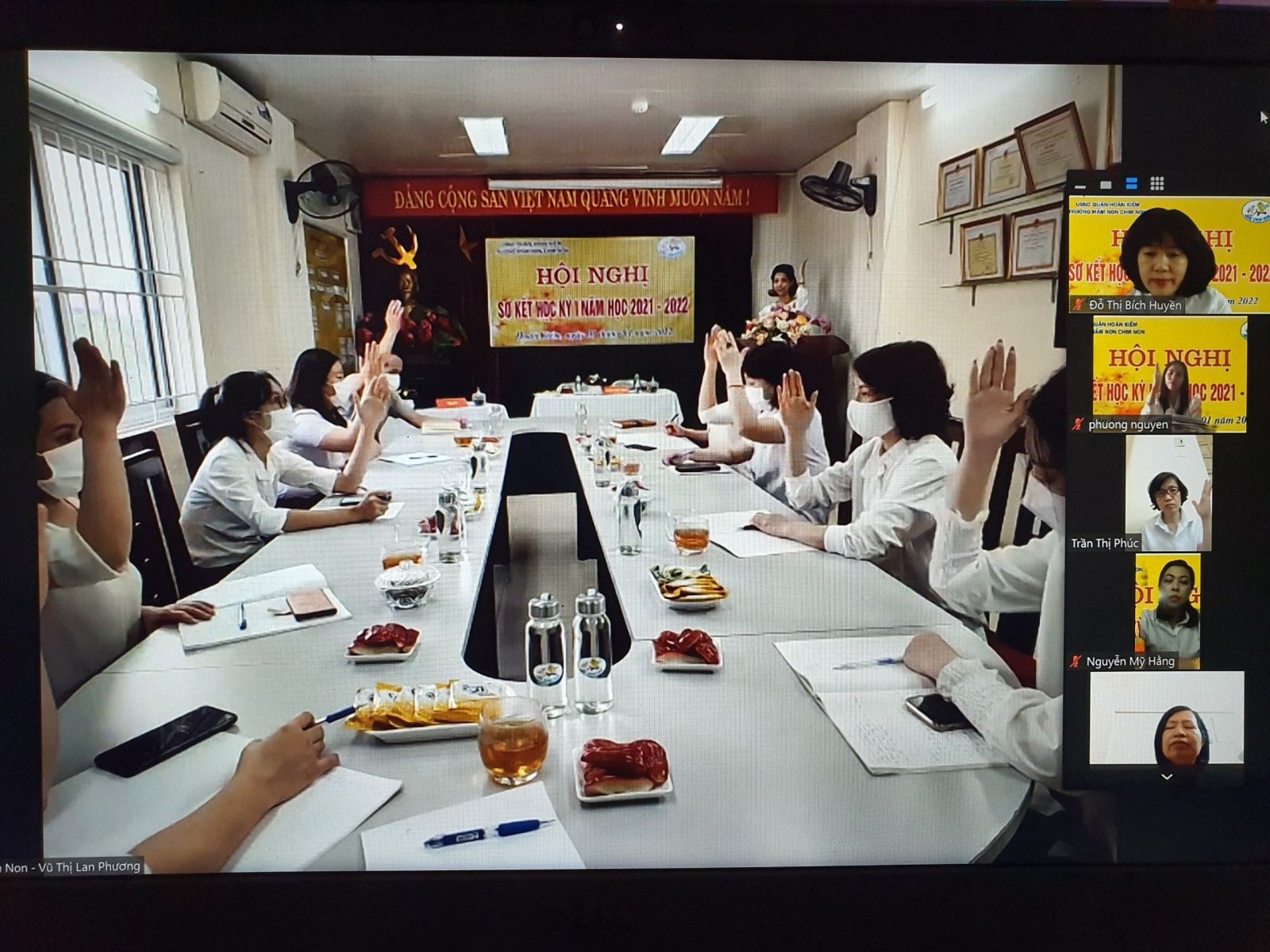 Hội nghị Sơ kết Học Kỳ I năm học 2021- 2022 được tổ chức dưới hai hình thức trực tiếp và trực tuyến để đảm bảo công tác phòng, chống dịch bệnh Covid-19 với có sự góp mặt của toàn thể cán bộ, giáo viên, nhân viên Trường Mầm non Chim Non.