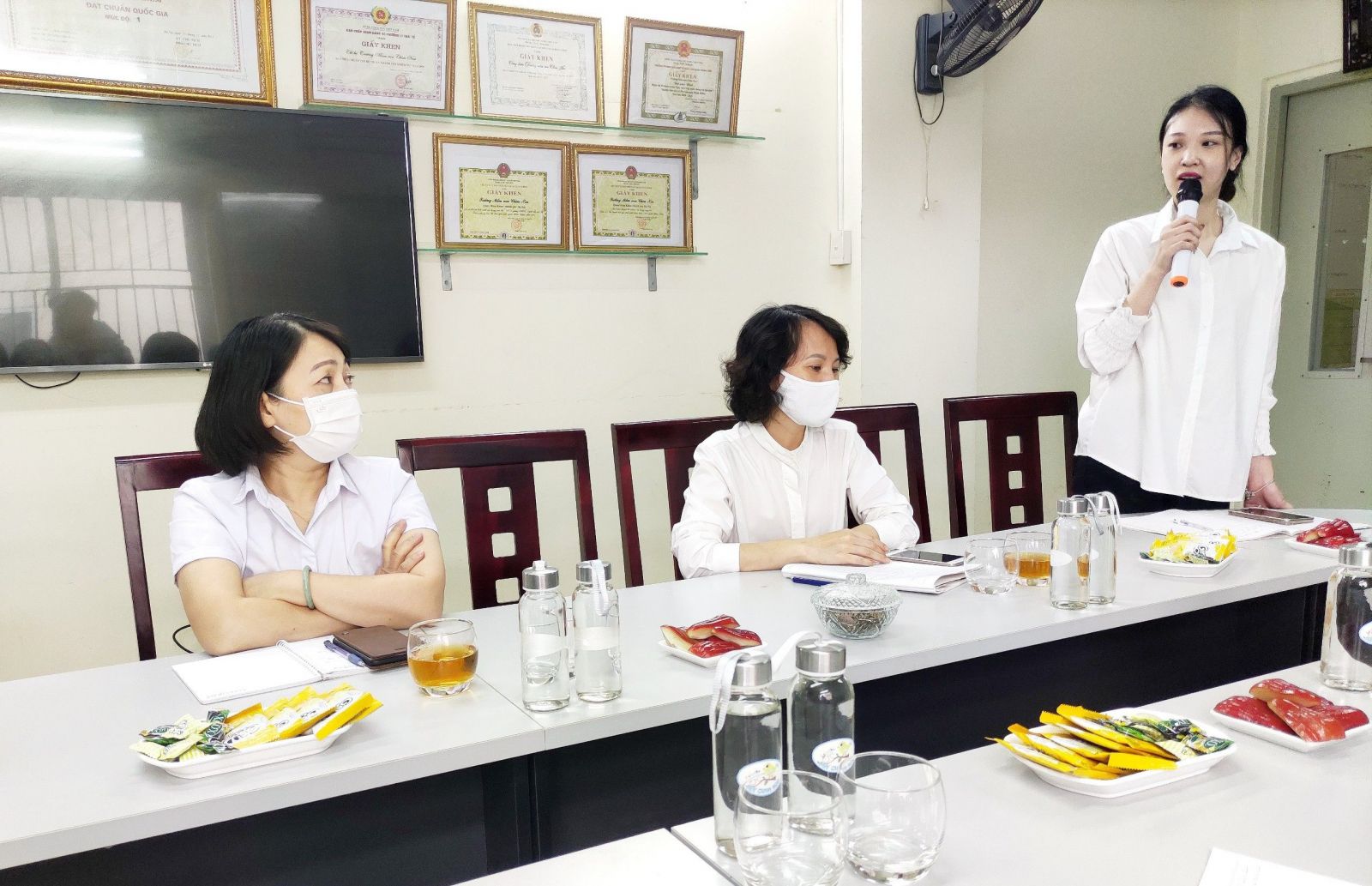 Đồng chí Nguyễn Thu Hà - Chủ tịch Công đoàn báo cáo kết quả hoạt động của Công đoàn học kỳ I và phương hướng hoạt động học kỳ II năm học 2021 – 2022